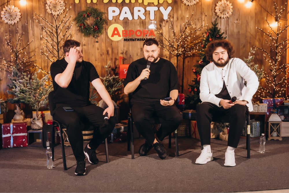 We have many years of experience in organizing such events, so we carefully planned every aspect of the New Year’s corporate party for the Aurora multimarket chain, from choosing a platform for online broadcasting to coordinating performances and an auction.