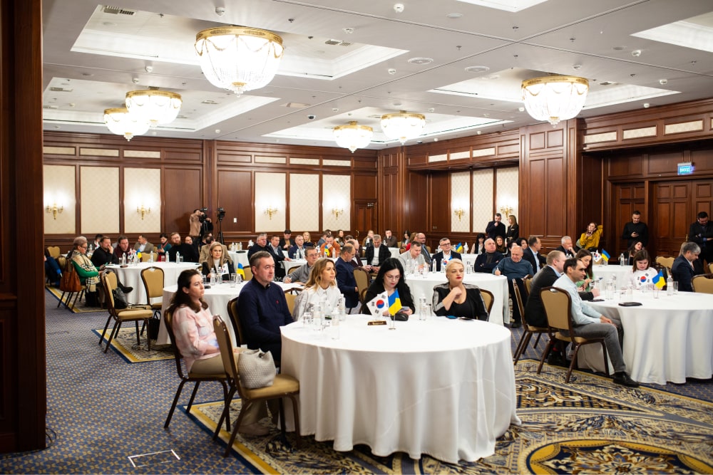 У готелі “Premier Palace” наше івент-агентство організувало важливий бізнес-форум для Українсько-Корейської асоціації нового будівництва, який об’єднав провідних бізнесменів, політиків та громадських діячів для обговорення перспектив України стати економічним дивом, подібним до Південної Кореї. Захід проходив у гібридному форматі за участі 100 людей у залі та прямим включенням з Кореї, що додало міжнародного масштабу події. Професійна організація конференції забезпечила насичену та цікаву програму, пропонуючи учасникам можливість дізнатися про актуальні економічні питання та встановити важливі контакти.